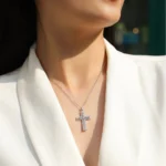 Diese Moissanit Kreuz Kette steht für Stärke, Glauben und Selbstbewusstsein. Sie verbindet christliche Symbolik mit moderner Eleganz und hebt sich deutlich von schlichten Designs ab.