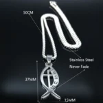 Diese hochwertige Ichthys Kreuz Kette aus Edelstahl verbindet zwei der stärksten christlichen Symbole: den Fisch (Ichthys) und das Kreuz. Sie steht für Vertrauen in Gott, Schutz im Alltag und die tiefe Verbundenheit mit Jesus Christus.
