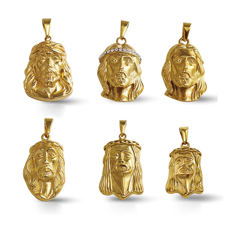 Jesus Anhänger Gold Herren Hip Hop Anhänger aus Edelstahl vergoldet