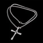Der Kreuzanhänger kombiniert moderne Optik mit tief verwurzelter christlicher Symbolik. Der Anhänger selbst ist ca. 5cm groß und besteht aus einer Zinn Legierung. Die stilvolle Form und der klare Kristall verleihen der Kette denselben markanten Look, den auch Vin Diesel alias Dominic Toretto trägt. Perfekt geeignet für Männer, die Stärke, Glauben und Stil vereinen möchten.