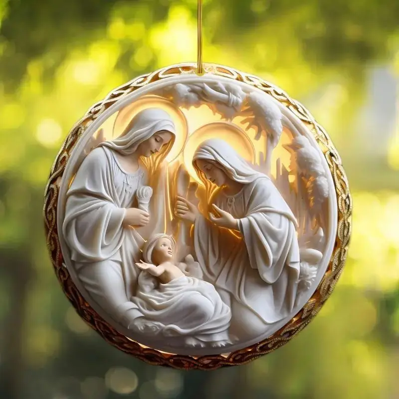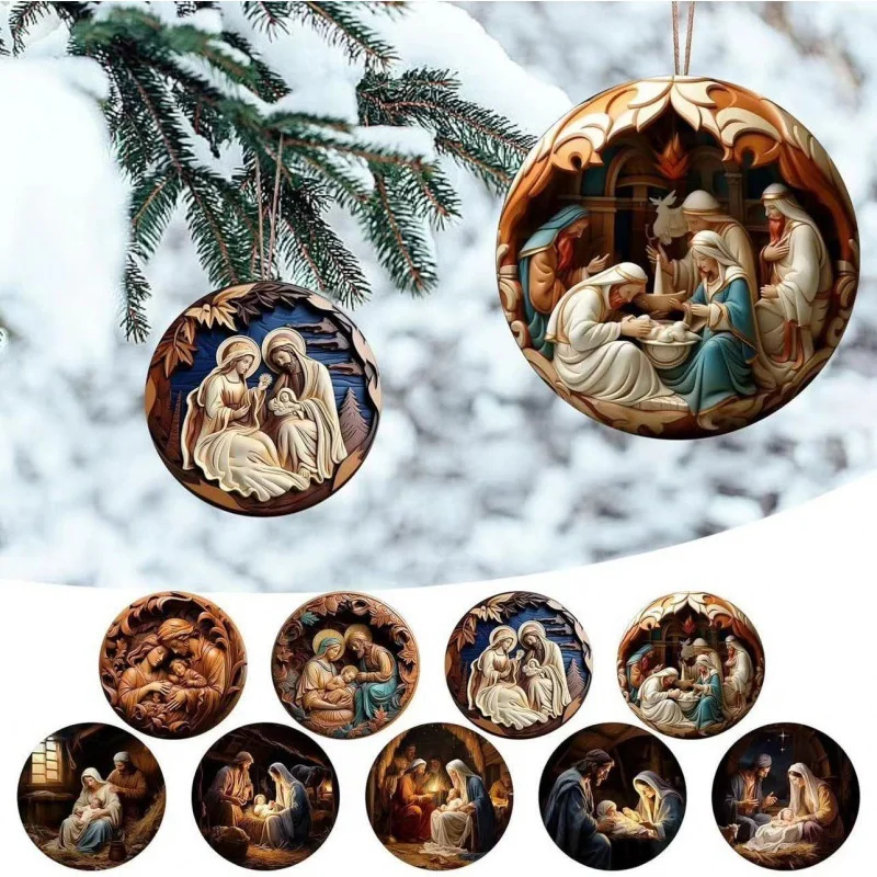 Gefertigt aus hochwertigem Acryl zeigt dieser 2D-Anhänger eine kunstvoll gedruckte Darstellung der heiligen Nacht – mit einem realistischen 3D-Effekt dank beidseitigem Druck. Trotz der flachen Form wirkt das Motiv durch kräftige Farben und feine Details besonders lebendig. Perfekt als religiöser Baumschmuck oder als Dekoration für Fenster, Wände oder Altäre.