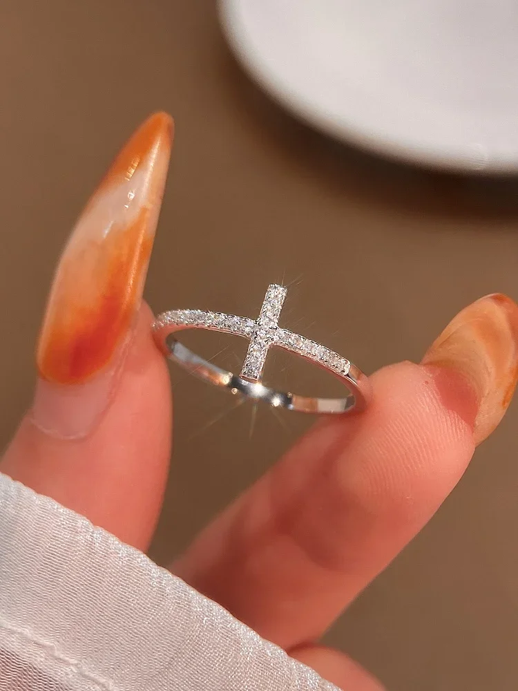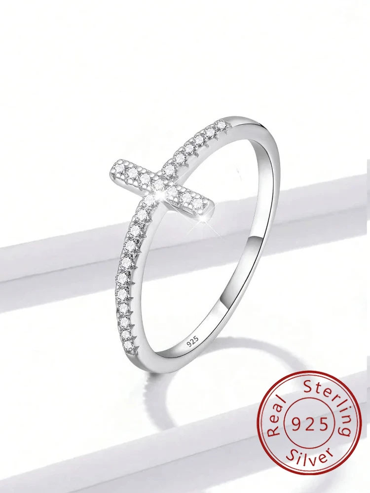 Kreuz Echtsilber Ring – T-Ring aus 925er Sterling Silber