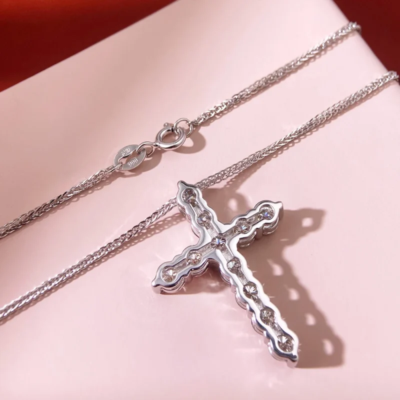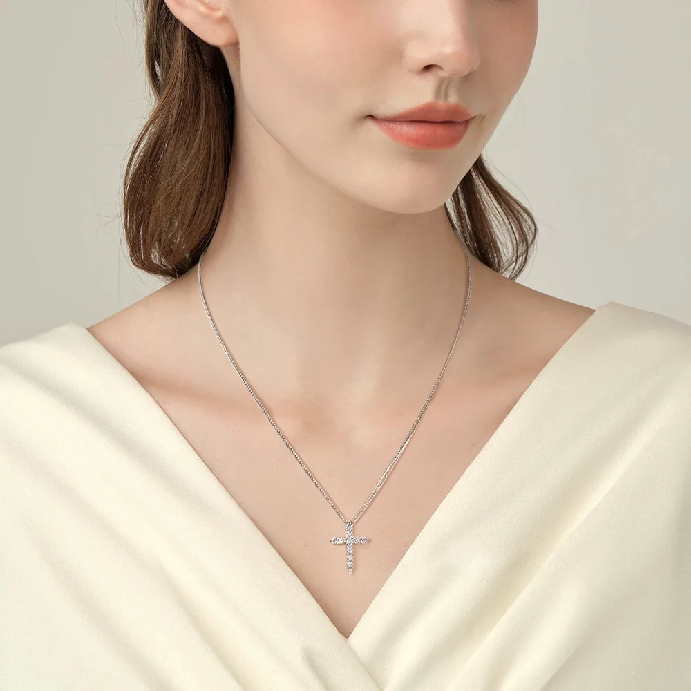 925 Sterlingsilber, Hauptstein Moissanit, klassischer Kreuzanhänger, feiner Schmuck mit hochwertiger Verarbeitung.