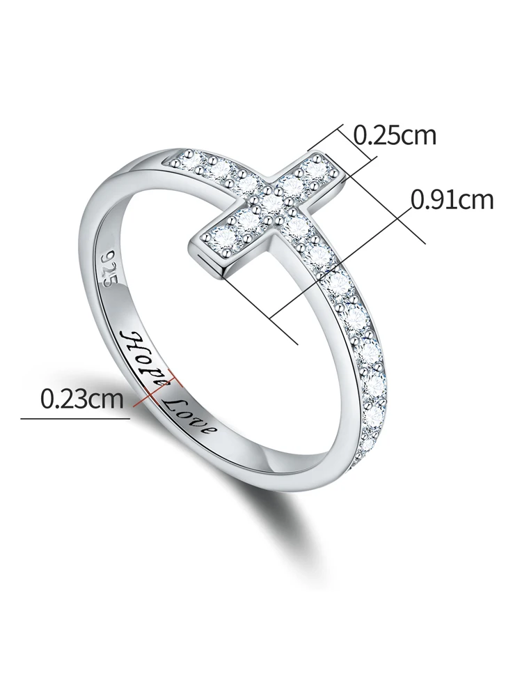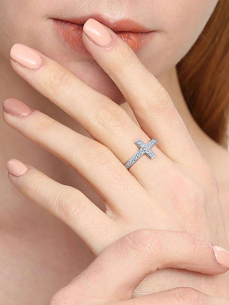 Ring mit Kreuz Silber – 925 Sterling Zirkonia Ring für Damen