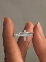 Dieser luxuriöse Ring mit Kreuz Silber besteht aus hochwertigem 925 Sterling Silber und ist mit einem funkelnden Zirkonia-Kreuz verziert. Das elegante, reine Design macht ihn zu einem besonderen Schmuckstück für Damen – perfekt für Verlobung, Hochzeit oder spirituelle Anlässe.