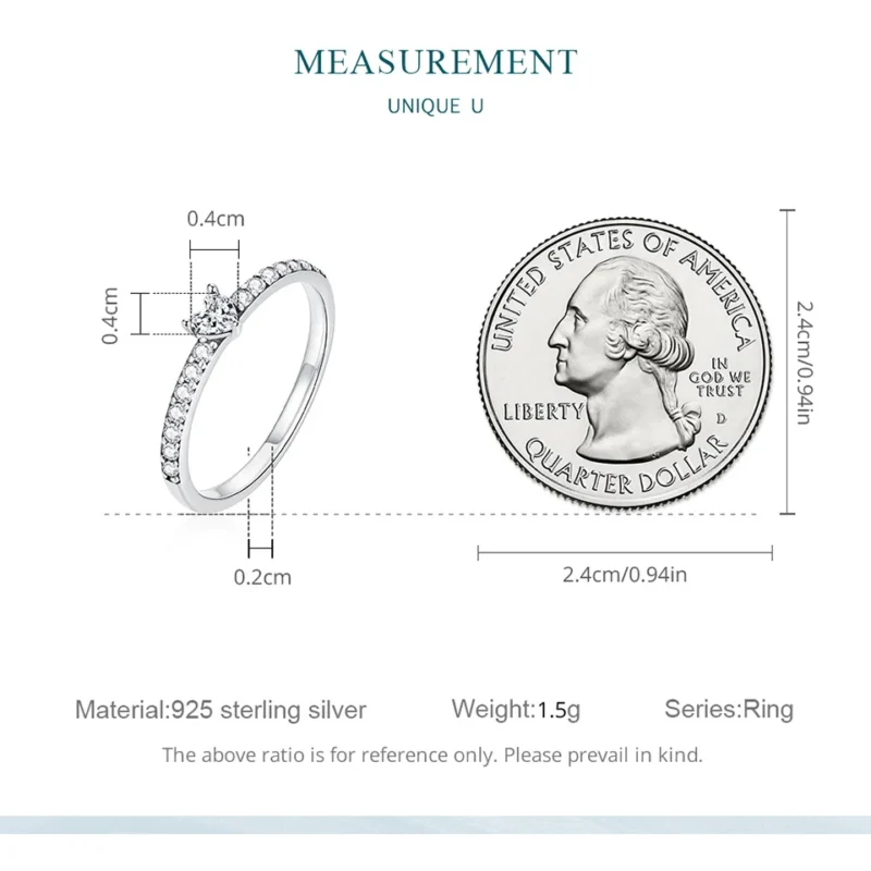 Der Ring besteht aus echtem 925 Sterling Silber, das für seine Langlebigkeit, Hautverträglichkeit und beständige Schönheit bekannt ist. Die klaren Zirkon-Steine sind facettenreich geschliffen und präzise in das Herz-Motiv eingesetzt – für ein luxuriöses Funkeln, das klassischen Charme versprüht.