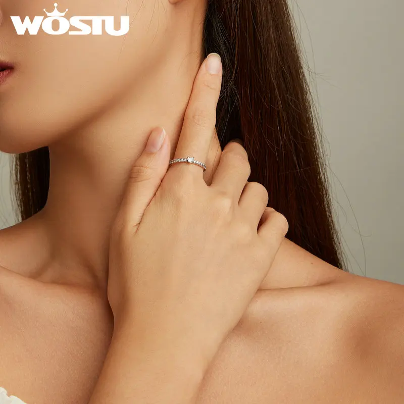 Erlebe zeitlose Eleganz mit dem WOSTU Sterling Silber Herz Ring für Damen – ein Schmuckstück, das Liebe und Stil perfekt vereint. Gefertigt aus hochwertigem 925 Sterling Silber, besticht dieser Ring durch ein klassisches Herz-Design mit funkelnden, klaren Zirkonia-Steinen, die das Licht bei jeder Bewegung einfangen. Ob als Versprechen-Ring, Geschenk zur Hochzeit oder als luxuriöses Alltagsaccessoire – dieser Ring setzt ein stilvolles Statement.